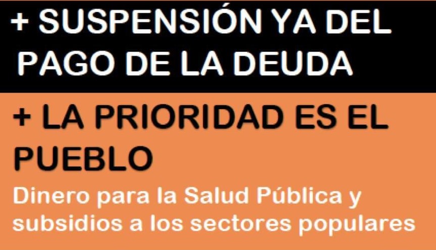 Las organizaciones, movimientos y personas nucleadas en la Autoconvocatoria por la Suspensión del Pago e Investigación de la Deuda, que aglutina a centenares de organizaciones y referentes de una gran diversidad de sectores y pensamientos, hemos tomado conocimiento de la decisión de su gobierno de aplazar hasta el próximo año, los pagos sobre la parte de la deuda pública emitida en dólares bajo ley nacional, un monto de aproximadamente USD 8.400 millones.