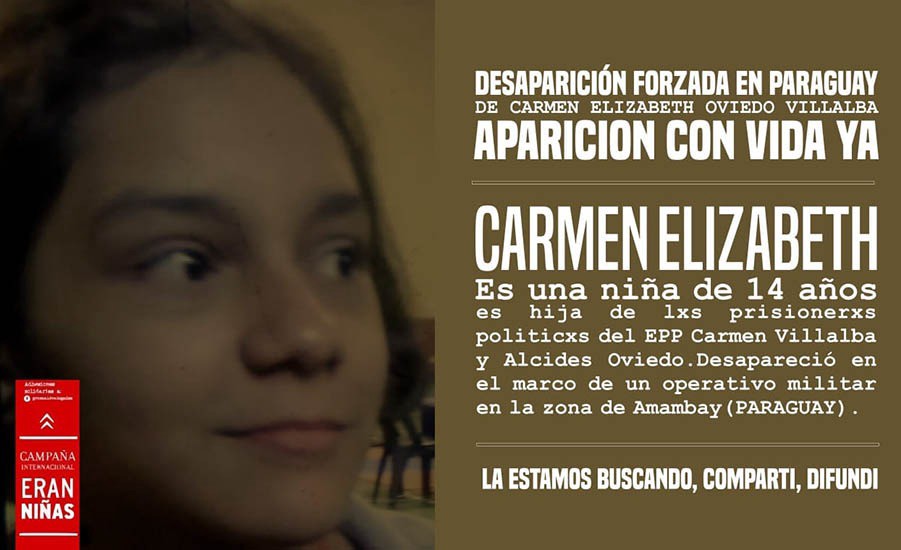 El 30 de noviembre de 2020 desapareció Carmen Elizabeth Oviedo Villalba, hija de dos presos políticos del Ejército del Pueblo Paraguayo (EPP), Carmen Villalba y Alcides Oviedo. Esta desaparición se produjo en el contexto de un operativo militar realizado por las Fuerzas de Tarea Conjuntas (FTC) en la zona de Amambay, donde habían sido ejecutadas las niñas argentinas Lilian y María Carmen Villalba el 2 de septiembre pasado.