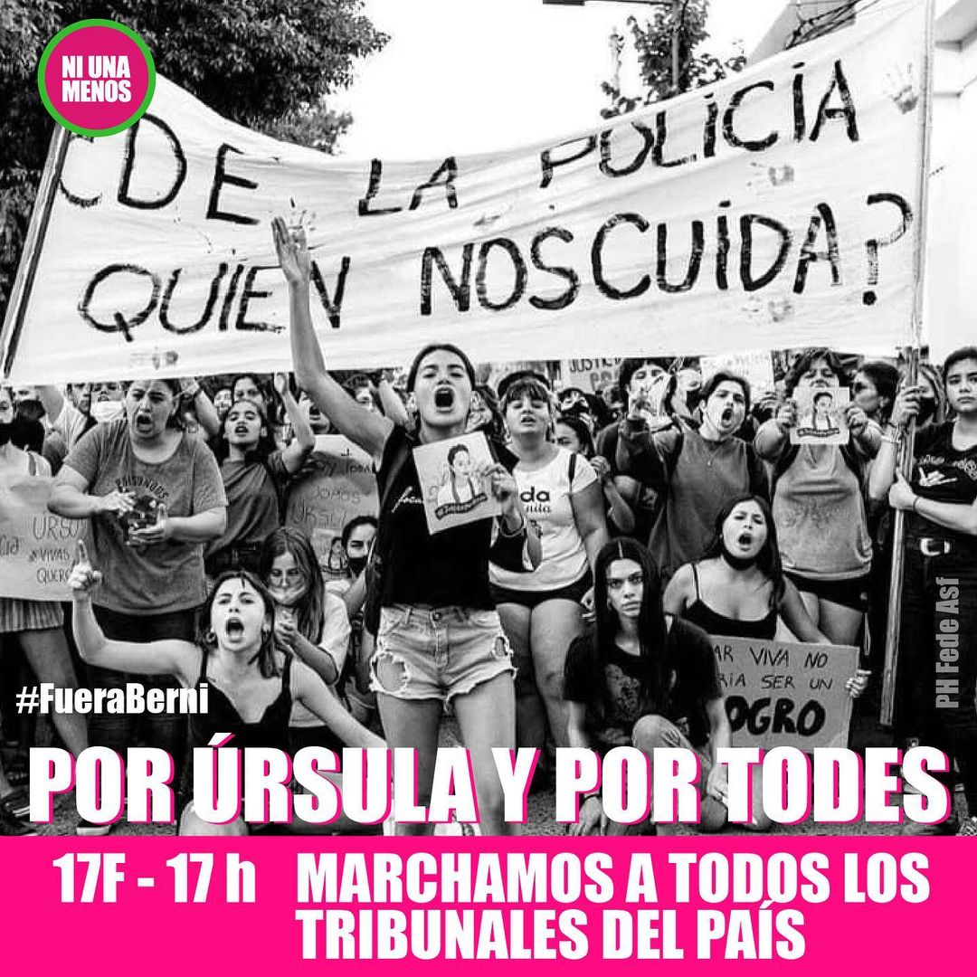 “Por eso el próximo miércoles 17 de febrero nos concentramos en Tribunales, en la Ciudad de Buenos Aires, y en cada tribunal del país para denunciar esta violencia que busca disciplinarnos, esta precariedad de la vida que nos condena a dejar el cuerpo en horas y horas de trabajo mal pago y no pago para no poder garantizar siquiera lo básico. Por Úrsula y por todes, volvemos a decir que vivas nos queremos. ¡Ni Una Menos! ¡Vivas y libres nos queremos! Basta de justicia patriarcal y de represión policial”.