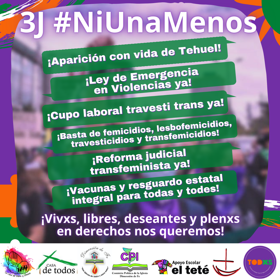 #NiUnaMenos #VivasNosQueremos #ParenDeMatarnos #DóndeEstáTehuel #BastaDeTravesticidios #CupoLaboralTravestiTrans #VacunasParaTodxs #FeminismoParaVivir #Todxs