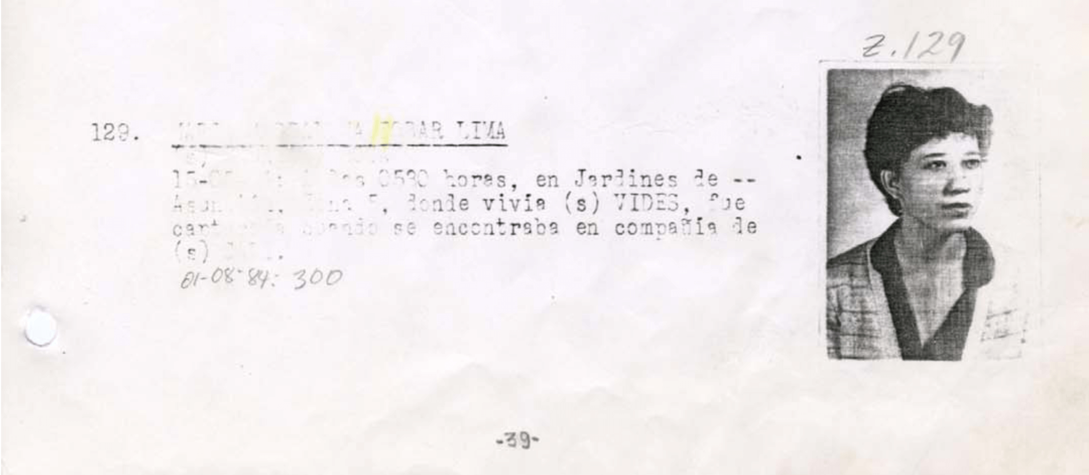 9. Lesbia Lucrecia García Escobar: señalada de ser la pantalla de Fidel Antonio Ávila Revolorio. Fue detenida el 29 de abril de 1984.