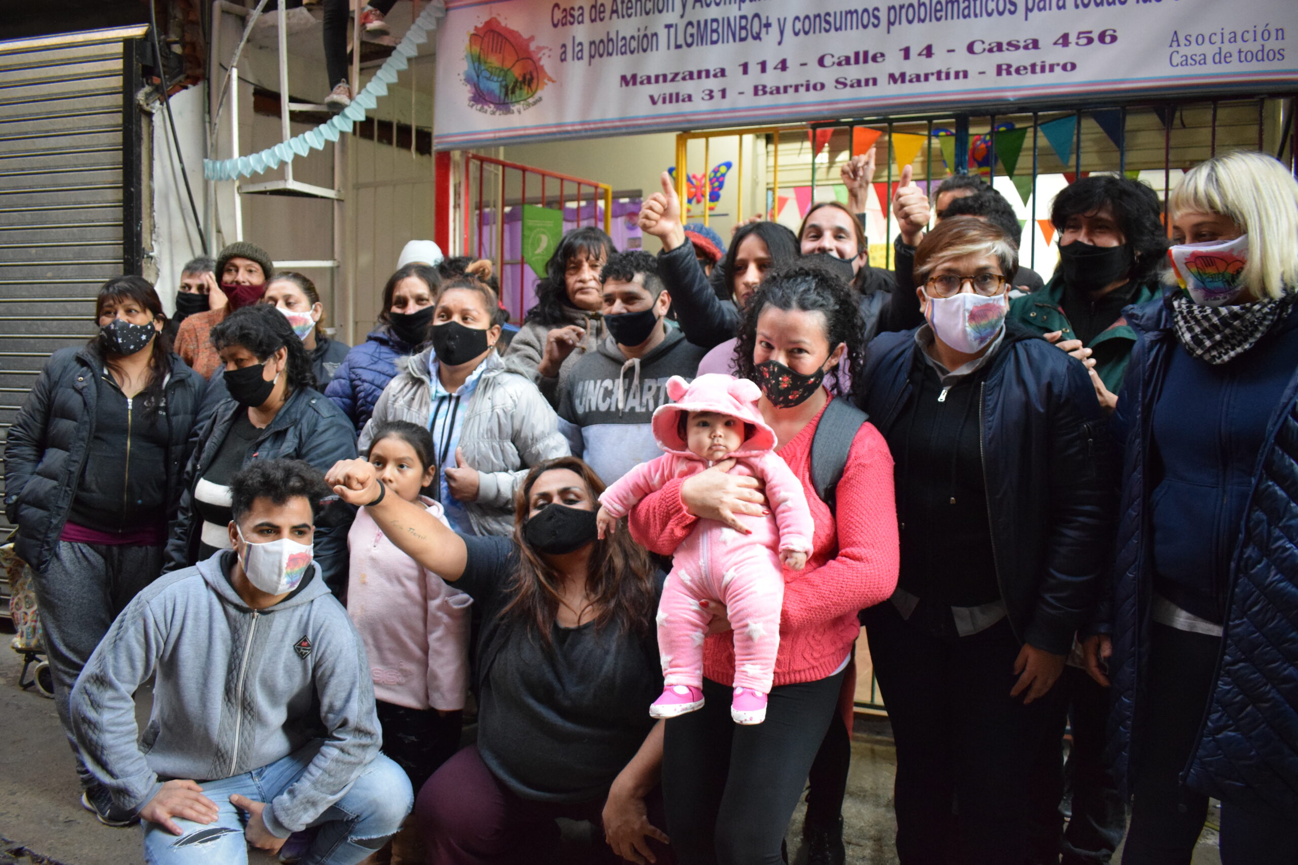 Recibimos en nuestro espacio ubicado en la Manzana 114, Calle 14, Casa 456 de la Villa 31, a los hermanxs y compañerxs diversxs con quienes a diario caminamos y construimos comunidad. Tuvimos la alegría de ser visitadxs por compañeras, históricas referentas de la lucha por los derechos de la comunidad travesti trans en Argentina, quienes nos abrazaron cálidamente y tiñeron de fiesta y brillos la jornada. Celebramos la presencia de Clara Fox junto a compañeras de Mis Trans Argentina, Daniela Ruiz de la Cooperativa Teatral Siete Colores Diversidad, Ivana Guitierrez quien es Directora de Diversidad del Municipio de Morón, Say Sacayán, activista trans de MAL, Marisol Brandan de Alexa Espacios Convivencial, sobreviviente, Carla morales Ríos y Mar Morales de Artistas Activistas Travestis – Salta y a las compañeras de la Casa de Las Mirabal.