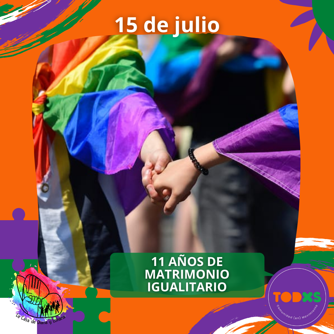 Celebramos este 15 julio los 11 años de la histórica jornada en que la lucha en las calles,en los barrios, en las escuelas y casas, tuvo eco en el Congreso de la Nación Argentina, durante el gobierno de Cristina de Kirchner, obteniendo la aprobación de la Ley de Matrimonio Igualitario para todas, todes y todos.