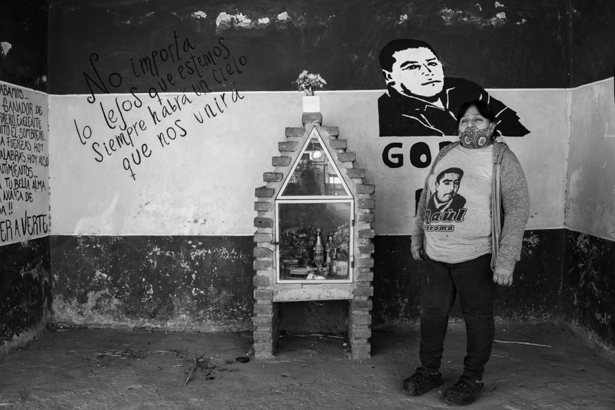 A unos metros de la casa de Delia y frente al kiosco del barrio, hay una gruta. “Ahí me lo mataron”, nos dice. La gruta está llena de frases, flores, fotos y obsequios. “Los chicos del kiosco suelen venir a limpiar y dejarlo lindo”, sostiene. La memoria de “El gordo Raúl” está más viva que nunca en cada vecine. Cuando volvemos, nos hace pasar a su casa. “Tengo que prender el fuego para hacer la merienda”, dice. Cuando pasamos, hay un horno de barro y unas ollas enormes que se ven como nuevas. Mientras ella les pone grasa por fuera para cuidarlas del hollín, nos cuenta que, con esas ollas, se alimentan 45 familias.