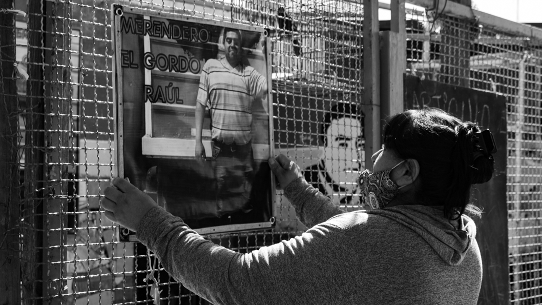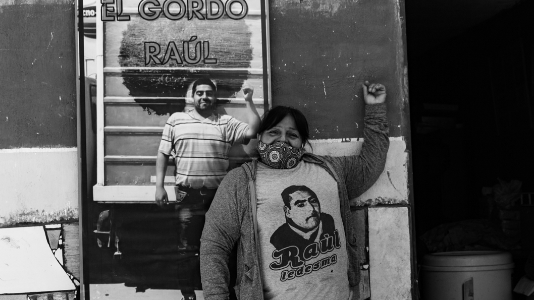 En barrio Los Cortaderos, la Delia nos espera en la galería de su casa. Lleva puesta una remera con el rostro de su hijo, Raúl Ledesma. La fachada de su casa tiene escrito “Merendero El Gordo Raúl” en un mural de color azul y amarillo. Él era de boca.
