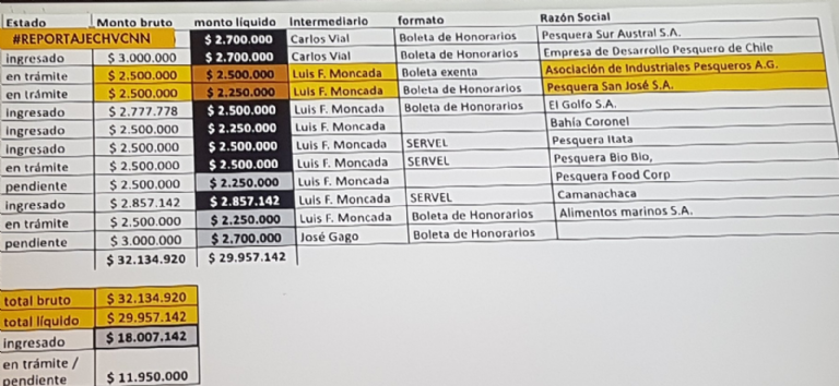 La mayor parte de estos fondos, según la prensa de Chile, aparecían como boletas de honorarios por supuestos servicios. Entre las personas que emitieron estos documentos aparece el coordinador de campaña de Sichel, Cristóbal Acevedo, quien también entonces acompañaba al actual candidato a la presidencia del país trasandino.