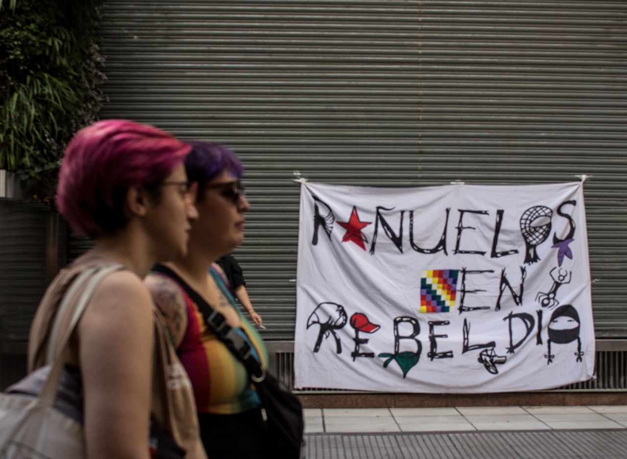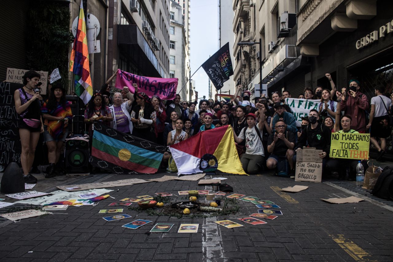 Alrededor del fuego, lejos de las carrozas con música al palo y cachengue, a partir del mediodía un grupo de colectivas y activistas de identidades no binarias se encontraron para construir otra forma de vivir el «día del orgullo»; desde una posición que desjerarquiza a la Ciudad Autónoma de Buenos Aires como centro de las discusiones y entra en la reflexión la preocupación por los territorios del Abya Yala; Colombia, Paraguay, Guatemala, Bolivia, Chile, Argentina toda, con sus pueblos originarios en lucha. Terricidio, Identicidio son conceptos que se expresan en la ronda como consecuencias de modelos patriarcales, coloniales, capitalistas, extractivistas que llevan adelante los Estados. Ante eso, las voces recuperan la memoria, la ancestralidad de las luchas y luchadoras como Lohana, Diana, Ramona, Cecilia.