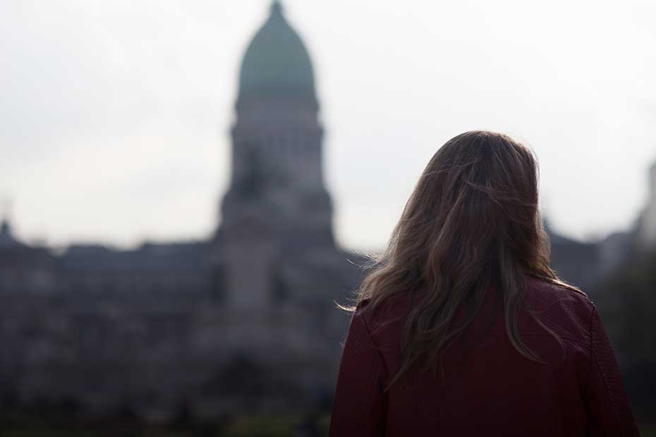 Cruza la calle Hipólito Yrigoyen y entra al Palacio. Varios móviles de televisión y radio quieren entrevistarla. Ella accede, con gusto. Los pibes de la facultad la están esperando. Son casi las ocho de la noche. Los lleva a un pasillo en el laberinto del Congreso en donde no hay nadie y no se escuchan ruidos.