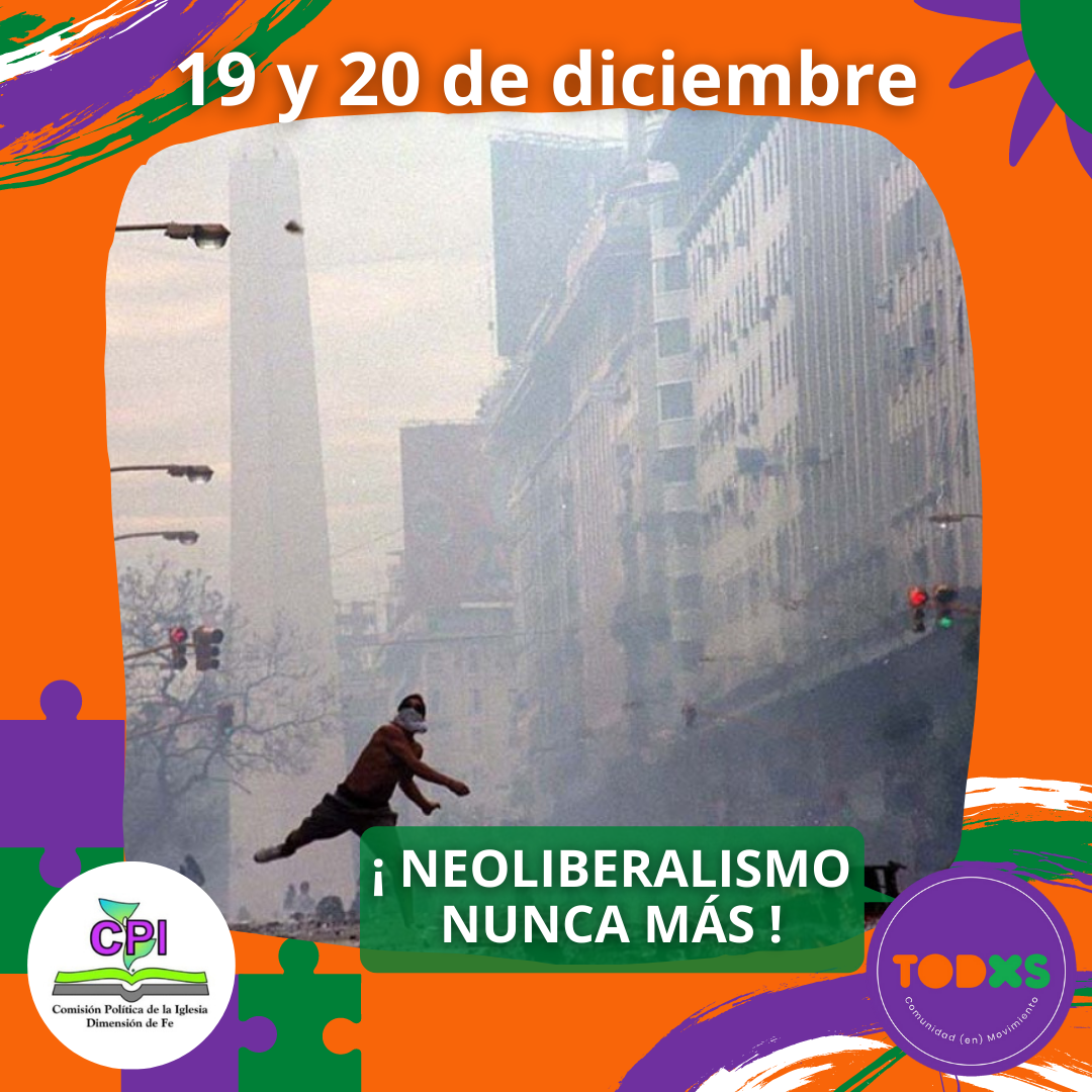 En memoria de nuestrxs hermanxs y compañerxs asesinadxs en aquellas jornadas de rebelión popular, en memoria de los asesinadxs sistemáticamente por falta de pan, en memoria de quienes se han dejado la vida en los barrios y comedores populares, especialmente en memoria de Pocho Lepratti, militante uruguayo asesinado por la policía santafesina cuando pedía el cese de la balas al grito de «¡Paren de tirar, hay chicos acá!», seguiremos luchando desde abajo para que sea verdaderamente una Argentina libre de injerencias económicas que buscan llevar las riendas del futuro que nos pertenece.