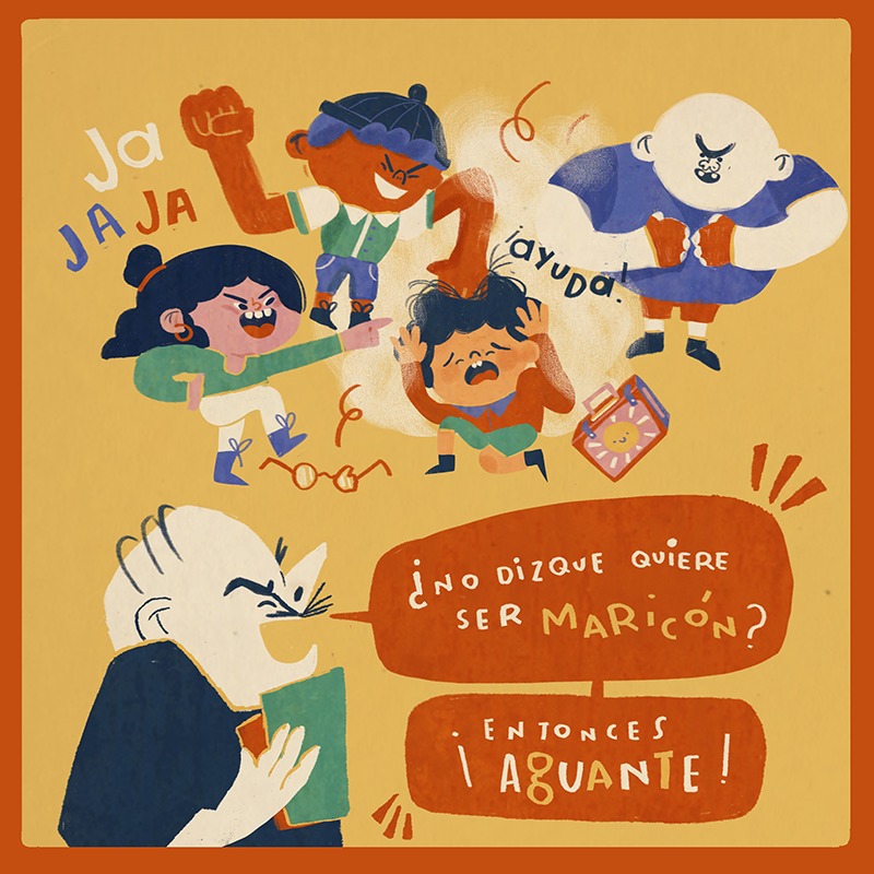 “Yo sufrí en la escuela cosas que ninguna persona debería padecer en su infancia y menos en el lugar que se supone debe ser un espacio seguro”, recuerda aún con dolor. Añade que en aquella época -los años ochenta- el bullying contra personas LGBTIQ era parte del día a día en las escuelas. (Ver: “La familia y la escuela, donde más se vulneran los derechos de niños y niñas”).