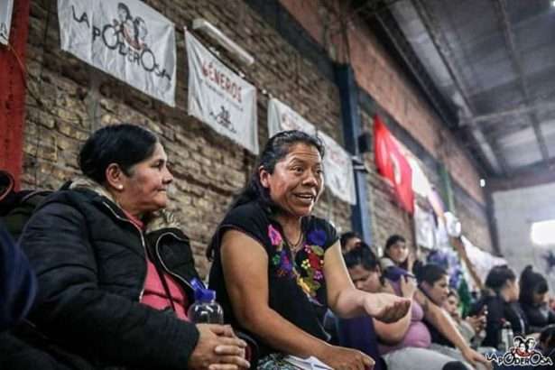 –Me encuentro en el proceso del caminar otros territorios. Es importante recordar que ese compromiso también se hizo desde asambleario, en el territorio, porque yo al principio no quería salir. No es justo que haya tantos hermanos y hermanas todavía desaparecidas de mi pueblo, estamos en búsqueda de ellas y exigiendo justicia. Entonces no es justo que con todo lo que representa para nosotras, que vivimos el genocidio, volvamos a pasar el exilio; para mí era una situación de tortura psicológica. Por eso se hizo la asamblea donde se acordó que pueda sostener esta expresión de defensa territorial con mi comunidad, pero que mi compromiso pueda ser caminar otros territorios donde se están viviendo otras invasiones de las transnacionales, invasiones imperiales y como así también las expresiones de violencias contra las mujeres y disidencias.