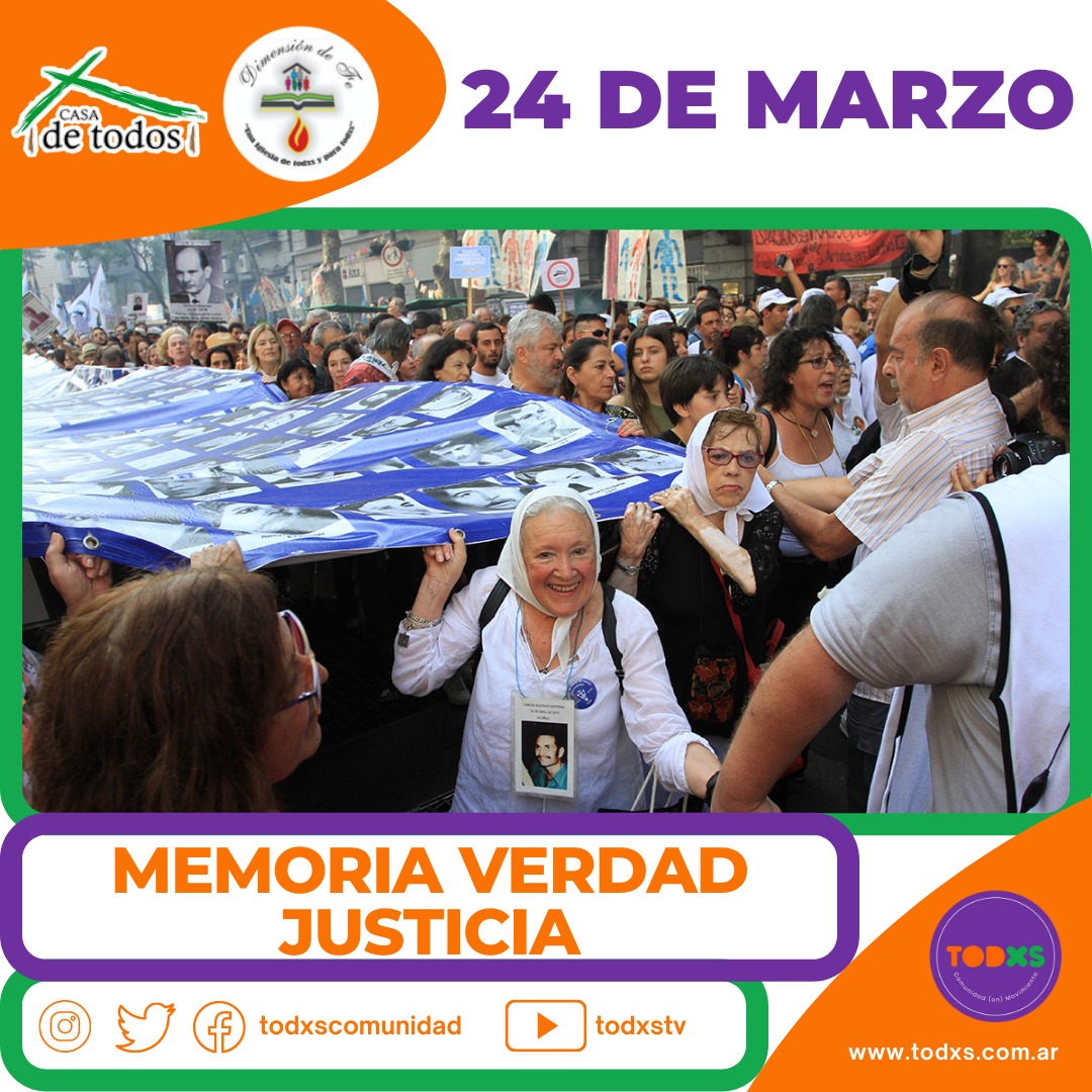 Asistir este año a la Plaza de Mayo, la plaza de las Madres de todo un pueblo que año con año defiende en cada casa, en cada escuela, en cada comedor y en cada barrio la Memoria, la Verdad y la Justicia, nos llena el corazón y nos renueva la esperanza para seguir luchando desde lo pequeño, desde lo cotidiano para que la entrega de miles y miles no sea olvidada y que sea sí el abono para la paz que sólo proviene de la justicia social.