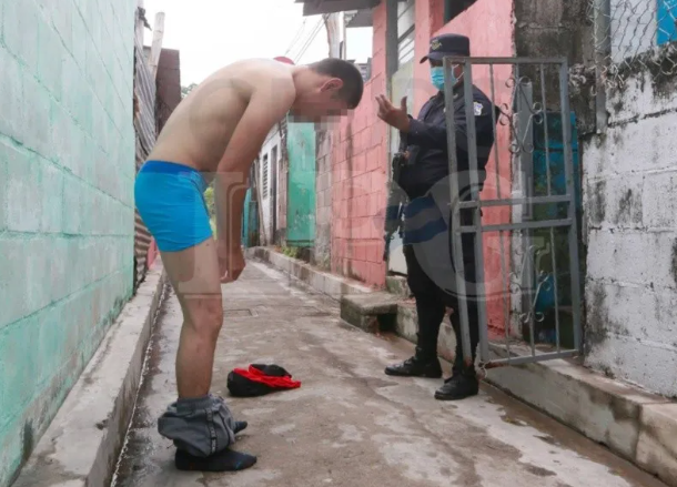 Durante la irrupción de la Policía Nacional Civil (PNC) en la comunidad 22 de Abril, este miércoles, en la que entraron sin autorización judicial a una veintena de viviendas, se captó también cómo desnudaron a un joven durante una requisa personal en la vía pública.