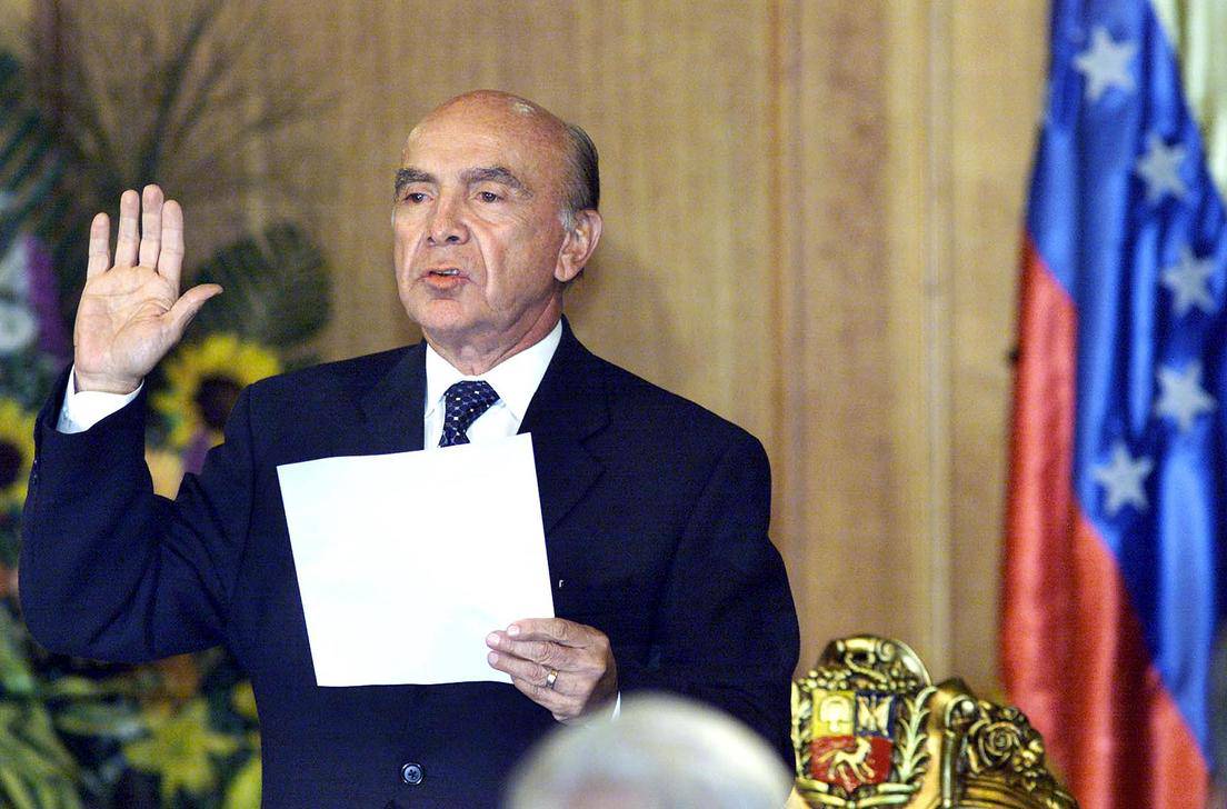 El presidente interino de Venezuela, Pedro Carmona, presta juramento el 12 de abril de 2002 en el Palacio de Miraflores en Caracas Gettyimages.ru