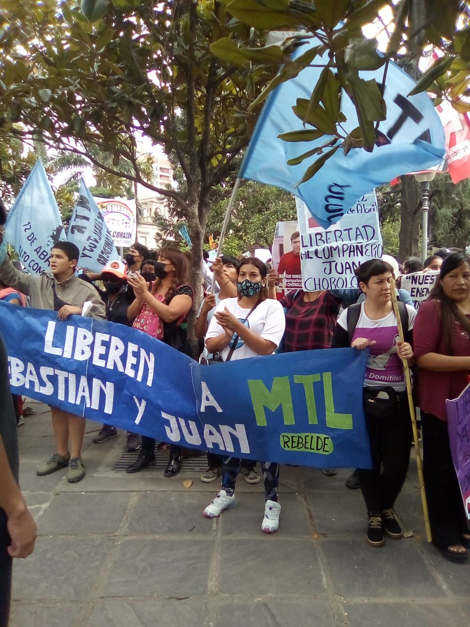 Hoy se desarrolló en la capital de Jujuy la cuarta jornada de movilización en la provincia de Jujuy, en reclamo al gobierno de Gerardo Morales por la libertad de Sebastián Copello y Juan Chorolque, dirigentes del PO y MTR-12 de abril, detenidos desde hace seis días por participar de movilizaciones contra el hambre y la pobreza.