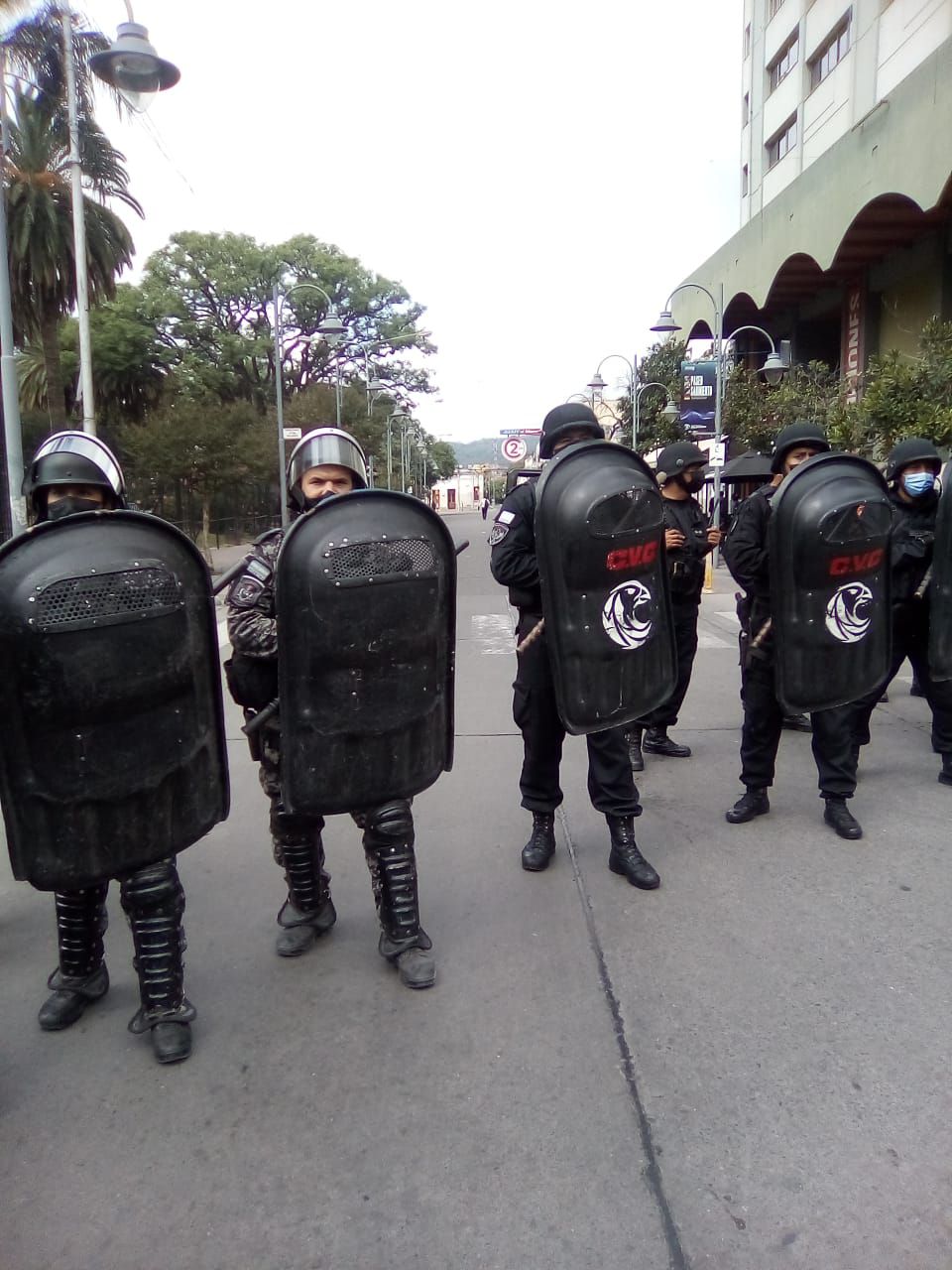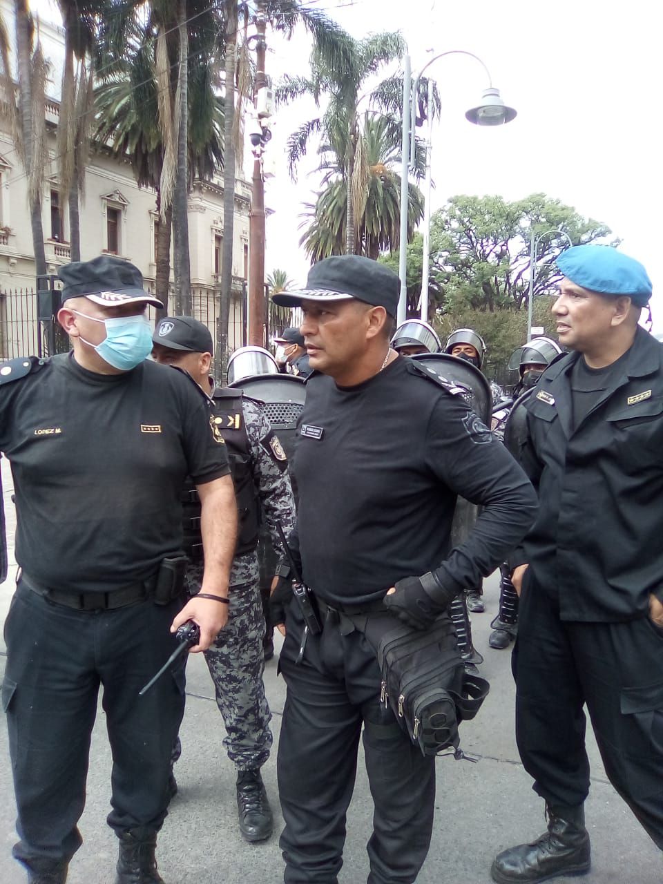 En el lugar un fuerte operativo policial aguardaba a los manifestantes frente a la casa e Gobierno.