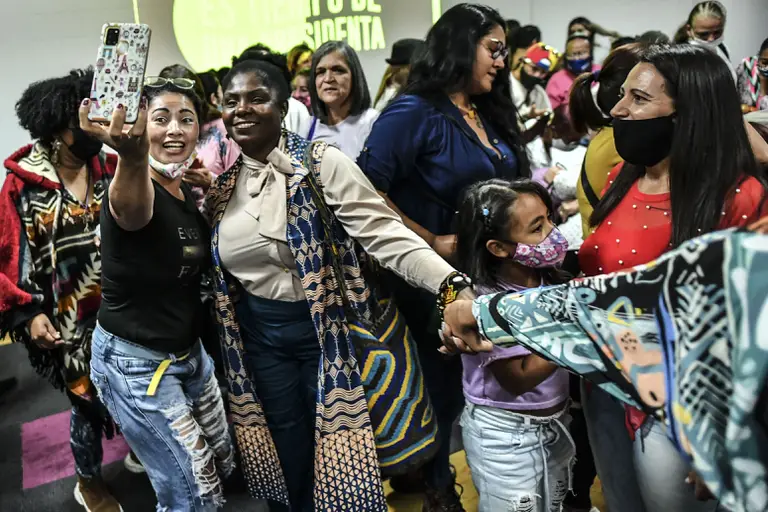 Francia Márquez posando entre una multitud de seguidoras durante un evento político. Foto: AFP/JOAQUIN SARMIENTO.
