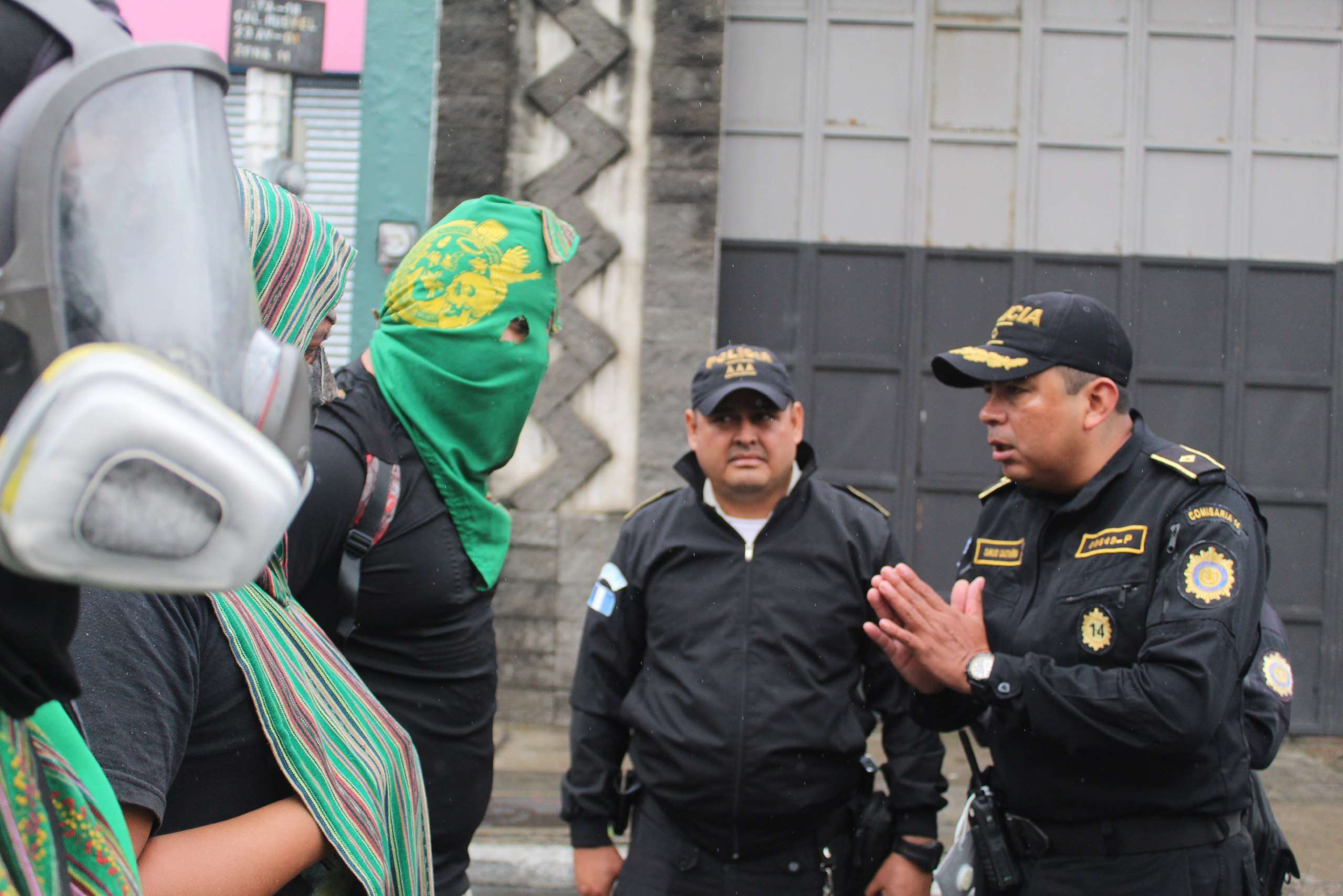 A las 10 de la mañana, cuando llegó el último pelotón en dirección a Mixco se bajaron de la patrulla, uno de ellos golpeaba su macana con el escudo, produciendo presión y tensión. En ese momento el agente que había sostenido el diálogo dijo que no había tiempo. “Lo que les queda a ustedes ahora es liberar el paso”, lo llamaron en ese momento y se fue.