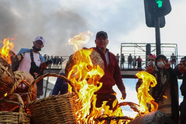 Mientras las autoridades ecuatorianas trataban de dispersar a las masas con gases lacrimógenos y proyectiles, los manifestantes respondieron arrojando palos.
