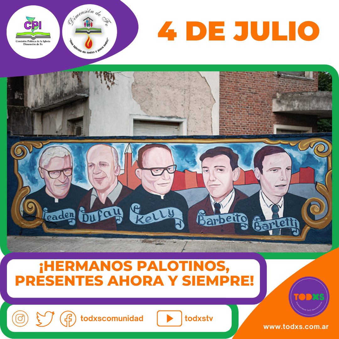 Este 4 de julio de 2022, en un nuevo aniversario de la Masacre de San Patricio, traemos a la memoria a nuestros hermanos en la fe y compañeros de lucha, los sacerdotes y seminaristas palotinos, quienes fueron asesinados en 1976 por un grupo de tareas en la casa parroquial, en el barrio de Belgrano, Ciudad de Buenos Aires.