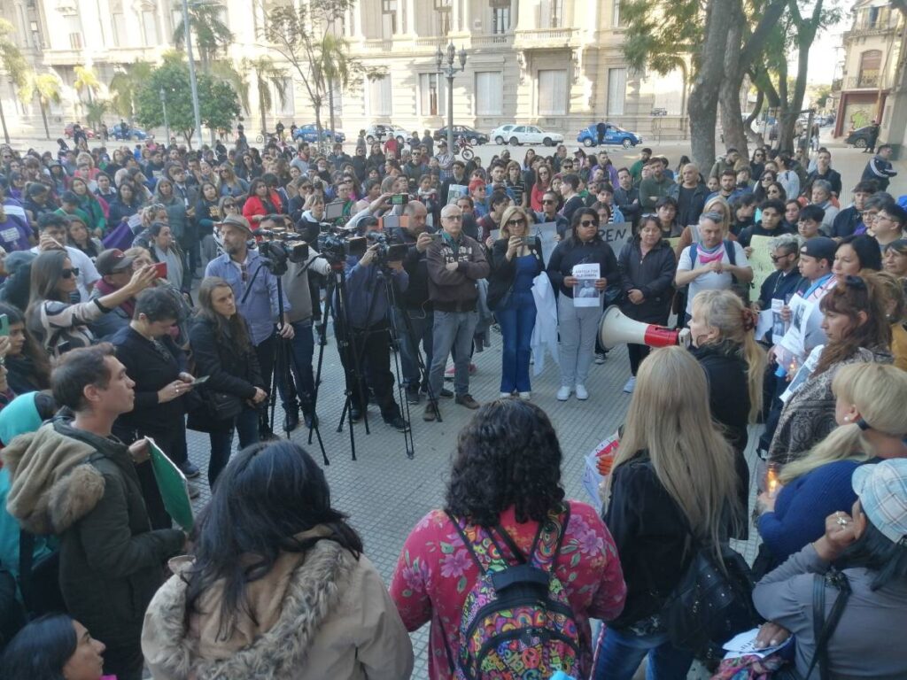 Con las banderas de la diversidad, carteles de todo grosor y tamaño, flores sueltas y ramitos; el colectivo LGBTI+ llora en Santa Fe el transfemicidio de una de sus principales referentes: Alejandra Ironici. A diferencia de anteriores marchas, hubo una multitud en la plaza 25 de Mayo que improvisó un escenario/altar en las rejas y la escalinata de los tribunales santafesinos.