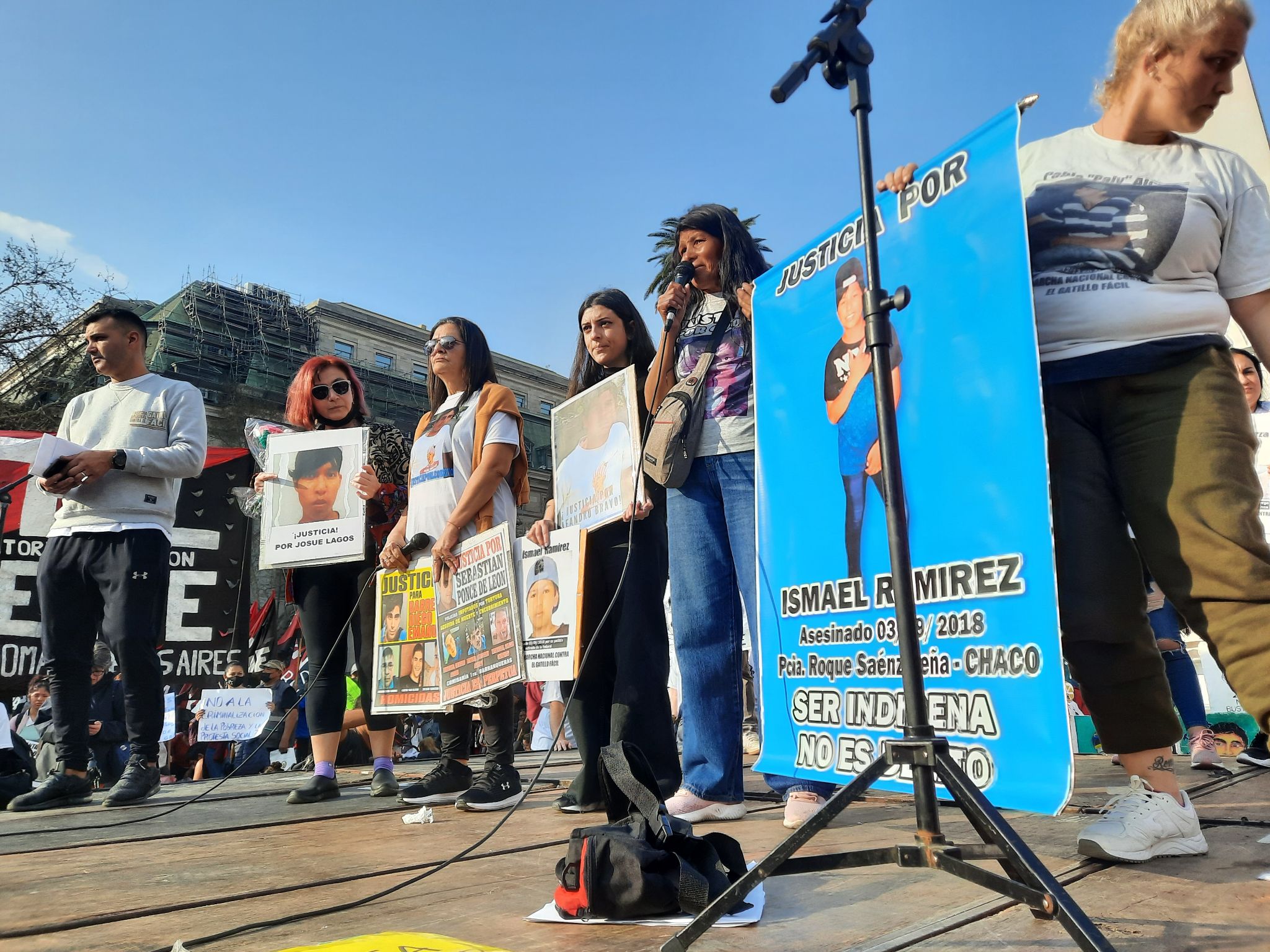 El pasado viernes, un grupo de mujeres vino desde la Provincia de Chaco para participar de la 8va Marcha Nacional contra el Gatillo Fácil que se desarrolló en la Ciudad de Buenos Aires. Allí, tomaron la palabra en Plaza de Mayo con el objetivo de visibilizar los casos de esa provincia, que en su mayoría no son conocidos en el resto del país. Allí mismo, al costado del escenario, pudimos conversar con ellas para que nos comenten algunos de esos casos. Además, para el próximo martes 6 de septiembre, convocan a una movilización por los 4 años del asesinato de Ismael Ramírez.