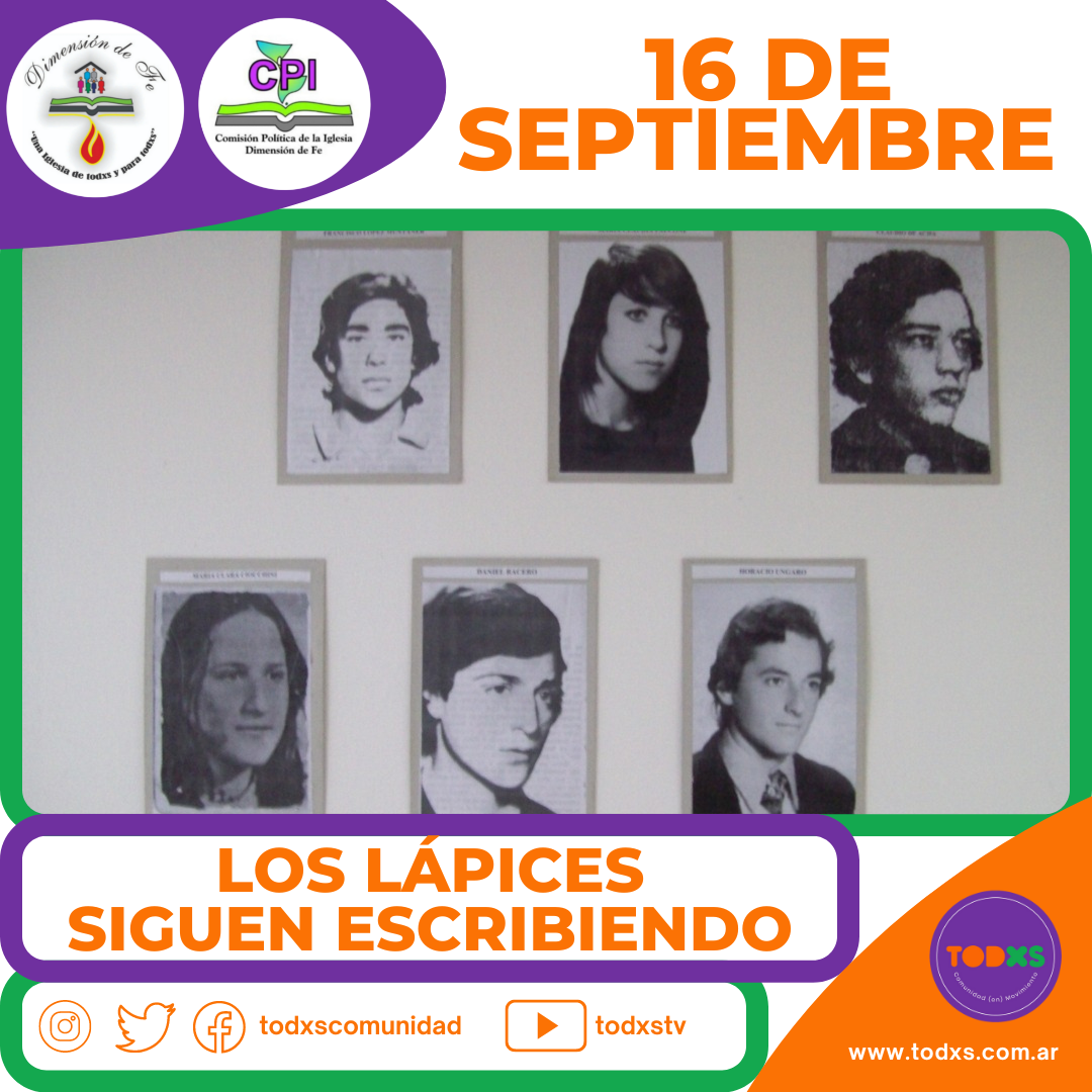 Como Iglesia Pentecostal Dimensión de Fe en IADLA este 16 de septiembre conmemoramos un aniversario más de La noche de los lápices, nombre con que se conoce la serie de secuestros y asesinatos perpetrados por grupos de tarea militares en contra de compañerxs de lucha, estudiantes de secundario en la ciudad de La Plata en 1976.