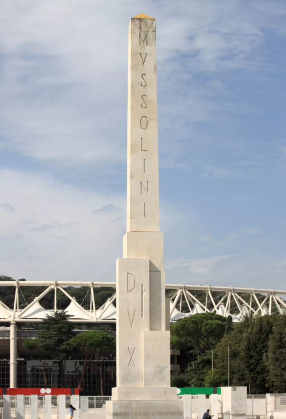 Aún quedan en Italia numerosos monumentos fascistas, como este obelisco dedicado a Benito Mussolini en Roma.