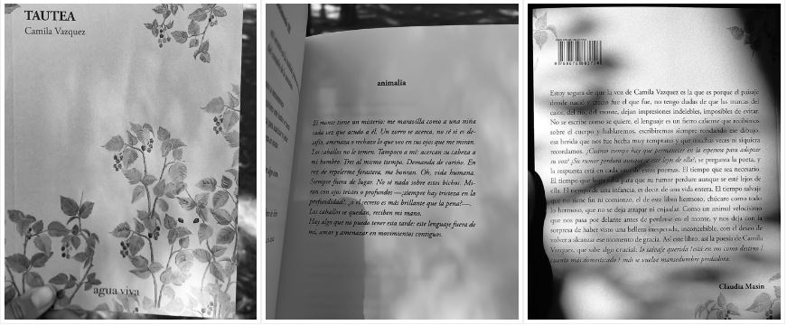 Tautea es una invocación, un altar hecho de ramas, pelajes y palabras. ¿A quién llama Camila Vázquez con sus versos? ¿A quién y con quién habla mientras hace ese ejercicio (ella dirá belleza o amor) inútil de domesticar la ausencia? Este libro nos propone adentrarnos a la espesura del monte y ser observadorxs atentxs. Diría, incluso, que, más que observar, la idea es ser el monte: la zarza, la presa, el trayecto del río.