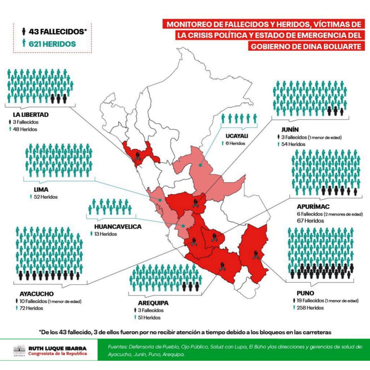 El martes la ciudad de Juliaca fue el escenario en donde las fuerzas represivas de la Policía y las FFAA practicaron la masacre asesinando a 17 manifestantes que pedían la renuncia de la actual Presidente Dina Baluarte y la disolución del Congreso. Los organismos de DDHH reprotaban, al menos, 112 heridos. La represión fue el punto más agudo desde el golpe contra Pedro Castillo.(leer)