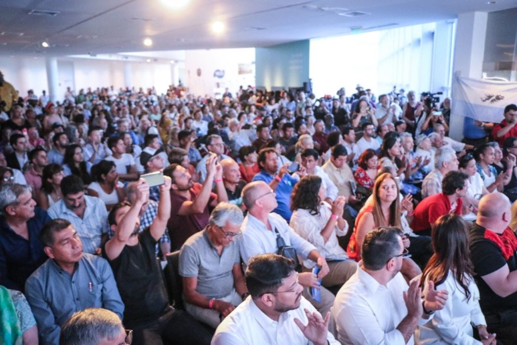 «Contamos con la presencia de 100 organizaciones de la Argentina de la CTA T, de la CGT, de los y las trabajadoras de la Economía Popular y de la CTA A. Es un placer recibirlos en nuestra casa”, agregó.