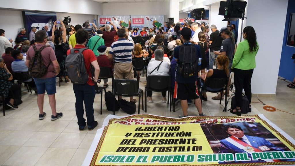 Abogado de Pedro Castillo junto a la delegación de residentes peruanos en Buenos Aires.