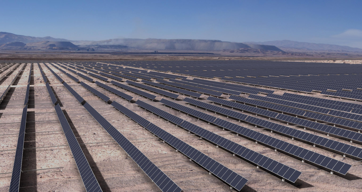 Paneles solares en en el Desierto de Atacama. Foto: construcción Minera.