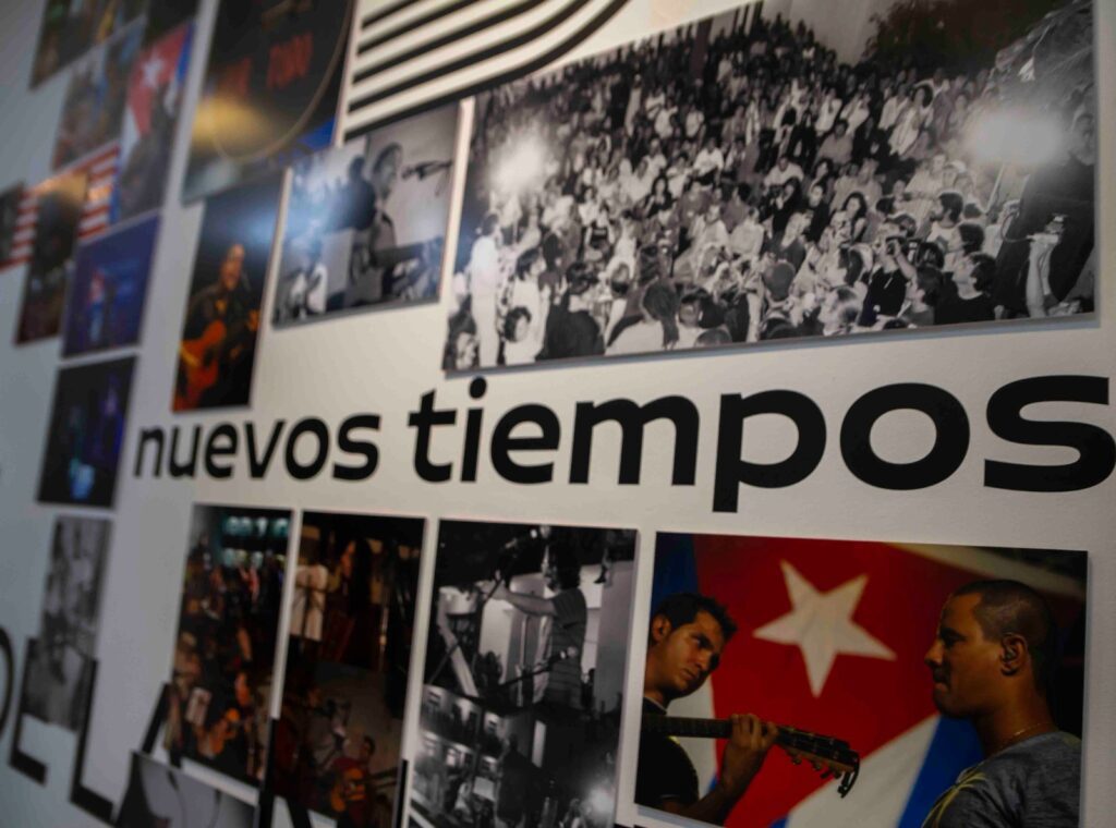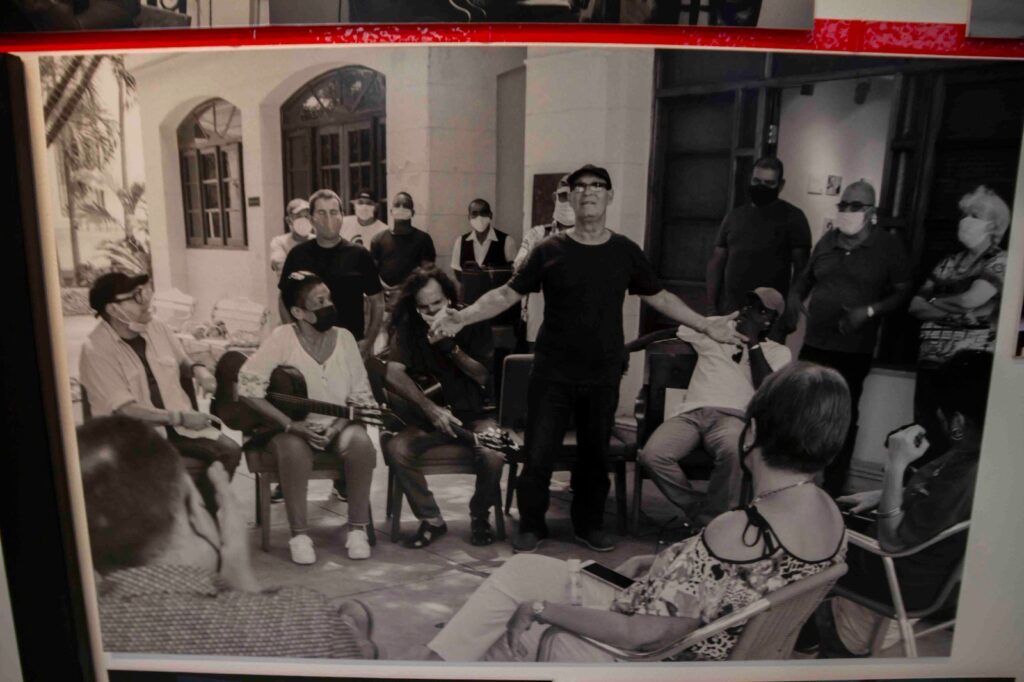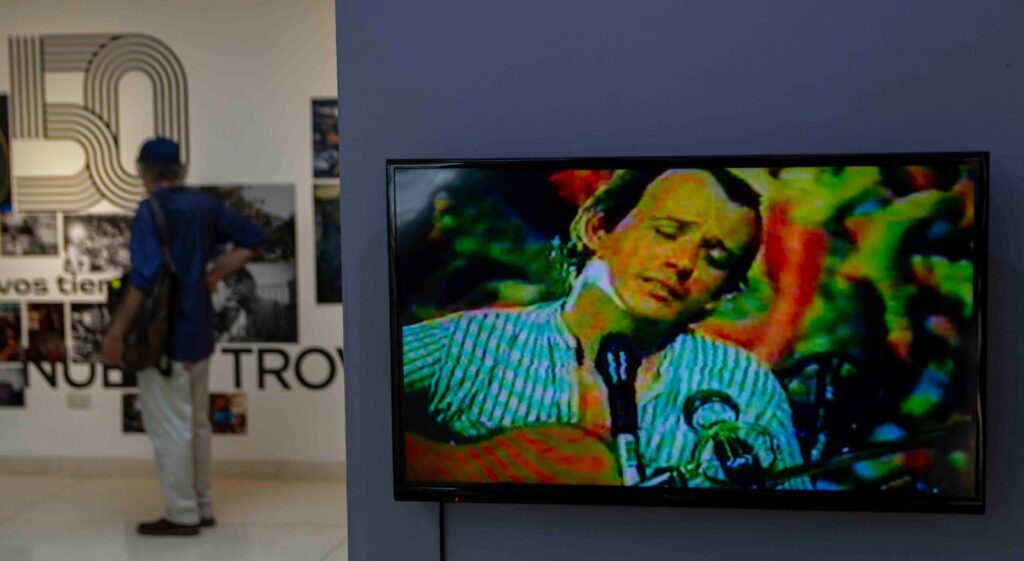 Una exposición que impacta y emociona, hermosamente concebida que incluye fotografías que van del gran formato con el que se sigue cronológicamente el nacimiento, desarrollo y evolución del Movimiento de la Nueva Trova, que recogió en sus prodigiosos compositores, poetas y músicos la riqueza de la música cubana que desde Sindo Garay le cantó al amor, a la patria y a la vida. Fotografías de archivos personales que recogen momentos fundacionales, la presencia y el apoyo siempre de Casa de las Américas, el Grupo de Experimentación Sonora del ICAIC, documentos inéditos, objetos, recortes de prensa, tapas de vinilo del Festival de la Canción Protesta, son parte de la historia de la música y reflejo de grandes momentos históricos, el impacto cultural que tuvo la Revolución cubana, una época que convulsionó al mundo desde el Mayo Francés, los movimientos de liberación, la caída en combate del Che, la guerra de Vietnam y Angola.