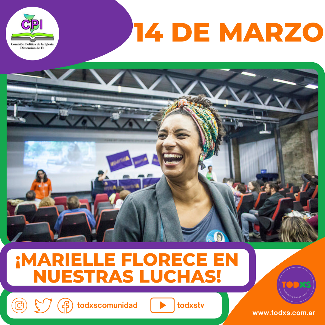 Como Comisión Política de la Iglesia Dimensión de Fe conmemoramos este 14 de marzo a Marielle Franco, luchadora social y política del PSOL negra, favelada, lesbiana y feminista.