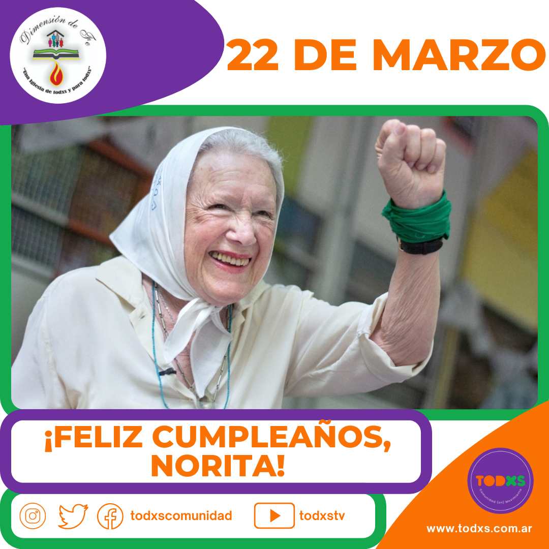 En esta Semana de la Memoria, en la que como pueblo argentino conmemoramos con cada actividad, cada encuentro, cada conversatorio, renovamos nuestra esperanza festejando el cumpleaños de Norita, defendiendo la alegría como trinchera, como impulso para seguir andando el camino en defensa de la Memoria, la Verdad y la Justicia.