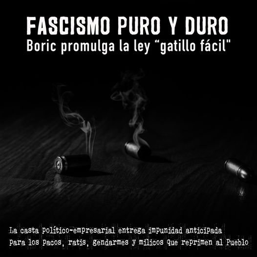 El gobierno de Boric tomando la agenda de seguridad de la derecha, no hizo más que continuar lo que iniciaron los gobiernos de los Partidos de la Concertación (centroizquierda). Amplios sectores que lo votaron con ilusiones democráticas, hoy se estrellan viendo que es un gobierno de gestión neoliberal que fortalece los rasgos autoritarios del estado chileno.