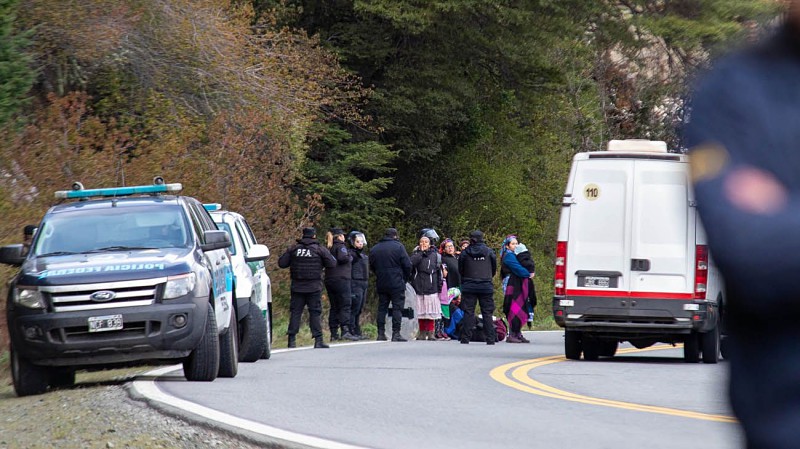 Imagen de las mujeres mapuche detenidas tras el operativo represivo de desalojo del Comando Unificado de Seguridad en Villa Mascardi, que actuó por orden de Aníbal Fernández. Foto: Eugenia Neme (Télam).