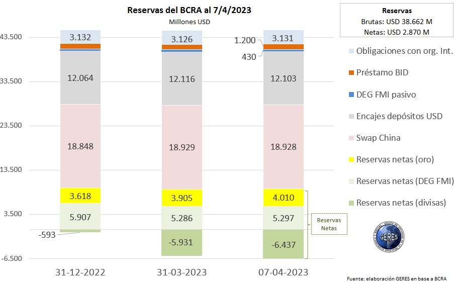 El motivo coyuntural, superficial, del accionar del Gobierno es la falta de reservas internacionales en el Banco Central (BCRA). El grupo de estudios GERES muestra cómo si bien el BCRA declara poseer activos externos por 38.662 millones de dólares, las reservas “netas” (descontando préstamos contraídos) son de solamente 2.870 millones y, peor aún, descontando los Derechos Especiales de Giro (instrumentos asignados al repago transitorio del capital adeudado al FMI), se ubican directamente en terreno negativo (lo cual implica que está haciendo uso de otros fondos, como la activación de algunos tramos del Swap con China).