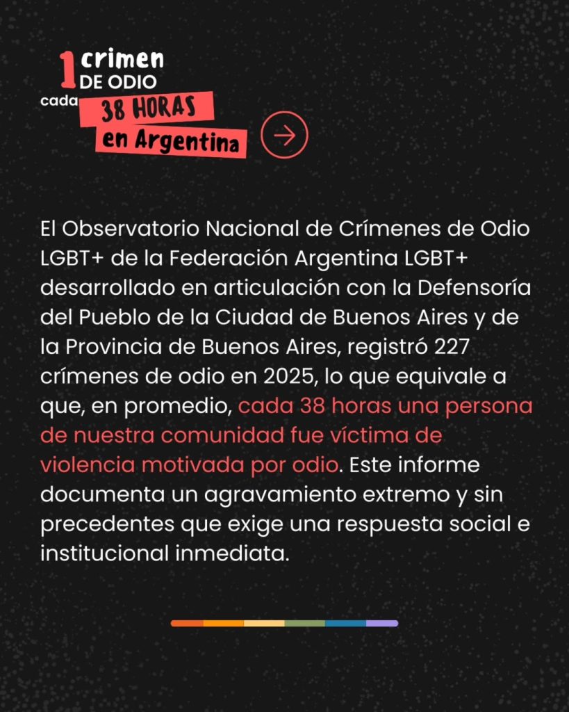 📢 Cada 38 horas ocurre un crimen de odio contra la comunidad LGBT+ en Argentina.