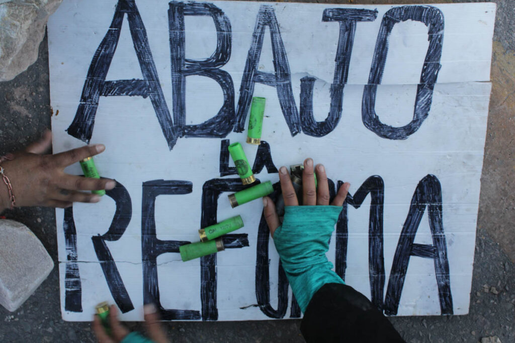 «Los cortes en Volcán, Purmamarca y La Quiaca se mantienen», avisa Patricia que es docente de una escuelita de la Quebrada de Humahuaca y tiene miedo a dar su apellido: «Hay listas negras. Nos amenazan con echarnos si reclamamos». Sus padres viven en Tilcara y ve con miedo la reforma de la ya vigente Constitución provincial. «La ruta 9 está intransitable, pero está tranquilo porque toda la fuerza policial está en San Salvador», explica. Su voz fue la antesala de lo que sucedió el martes en la capital provincial: una de las más violentas represiones que recuerde Jujuy.