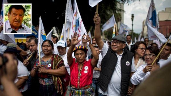 Mauro Vay Gonón (foto enmarcada), fundador y coordinador del Comité de Desarrollo Campesino (Codeca) que 2019 fundó el MLP y postuló Thelma Cabrera (camisa roja) y con solo un mes de campaña electoral registró casi medio millón de votos, pese al fraude. En junio éste año no le permite competir porque está empatando en las encuestas.